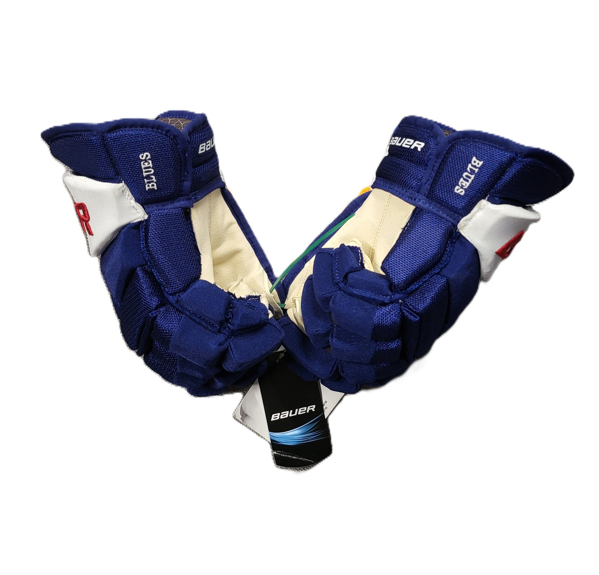Purchase a pair of new 13" "Blues" Bauer Retro Gloves. These gloves are new. These gloves are sold on an as-is basis and all sales are final. These gloves do not come with a certificate of authenticity.